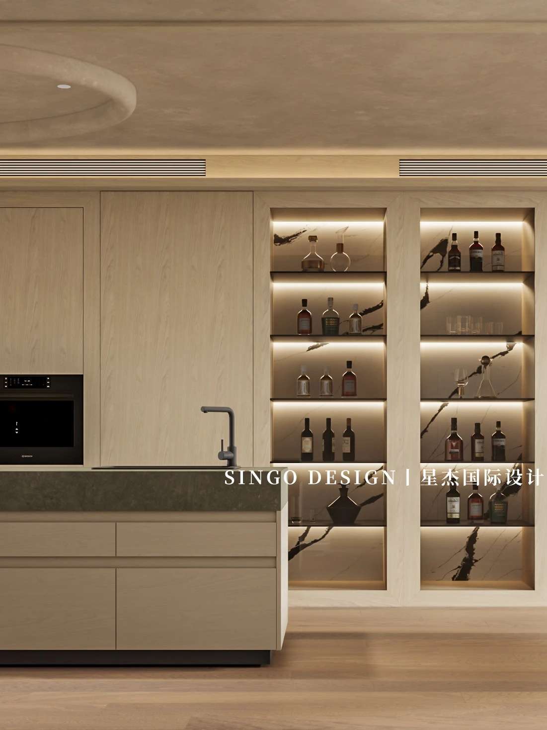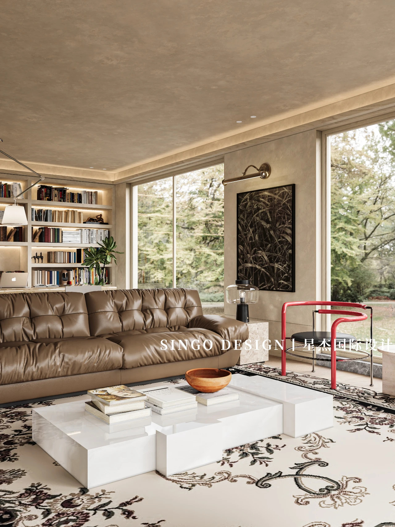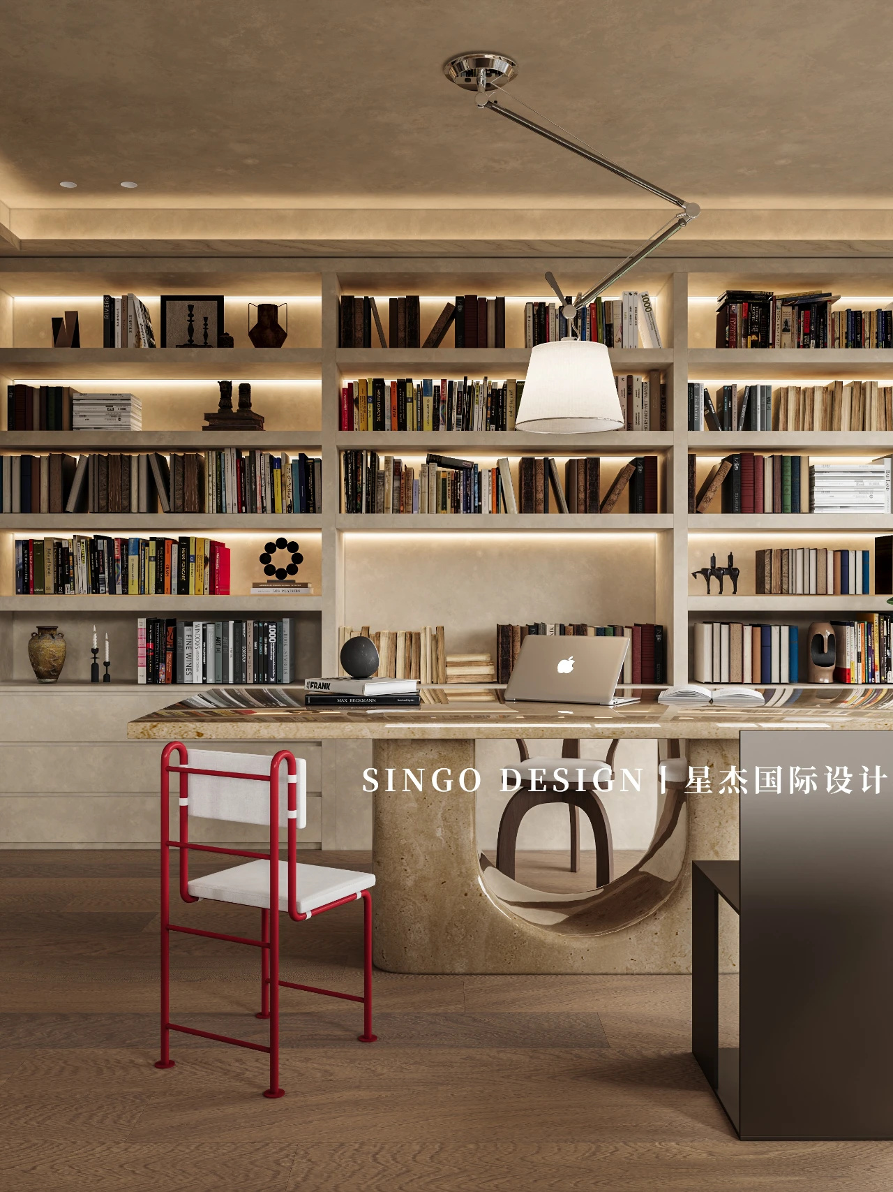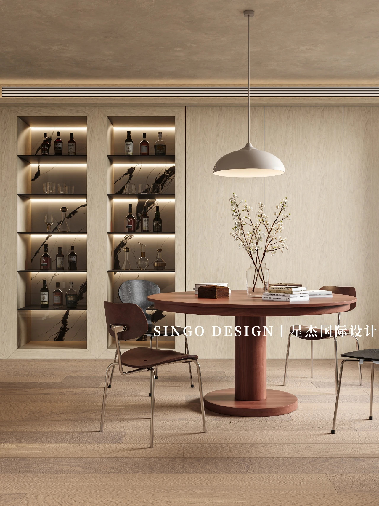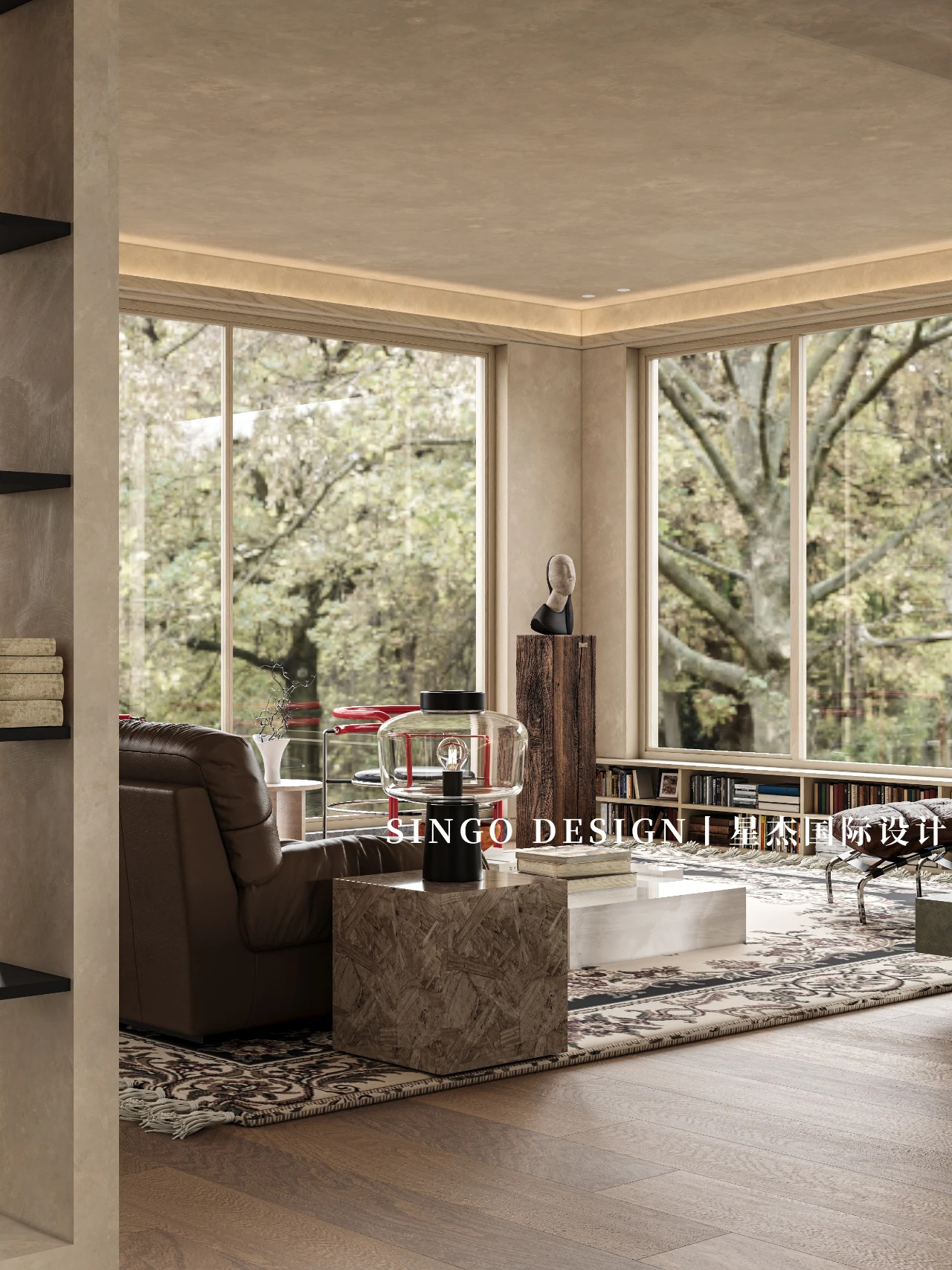 ▫️客餐厅、书房以洄游动线衔接,并借景自然,强化侘寂的自然哲学,让实用与美学共生。
